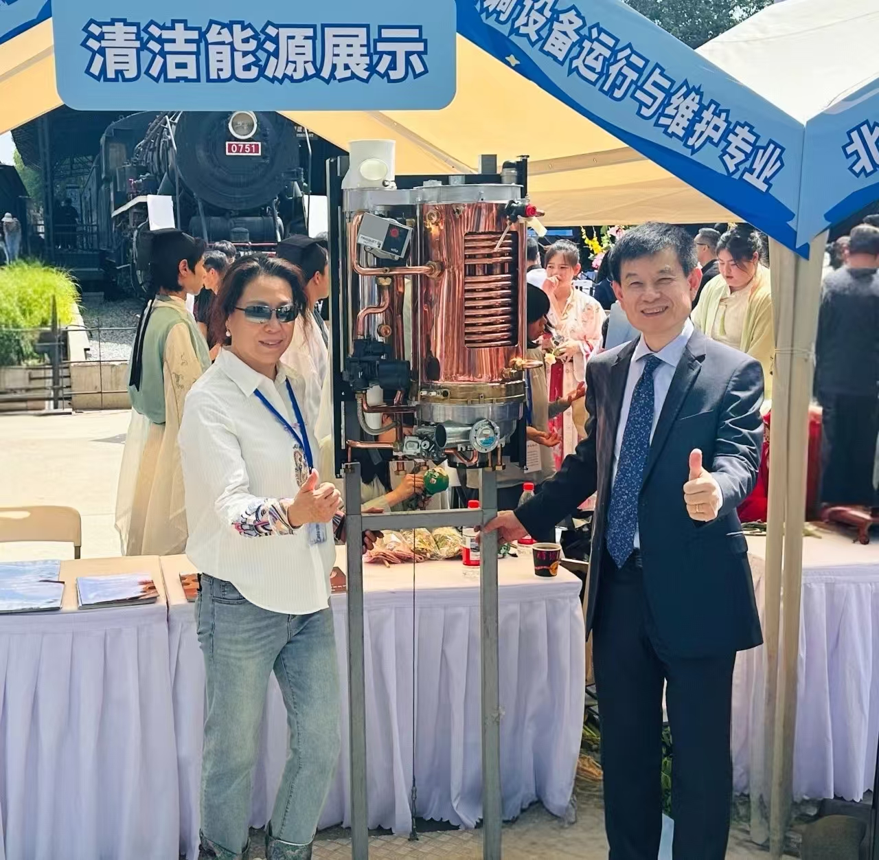 作为职业教育国际化的典范,由中法清洁能源技术培训中心推出的清洁能源展位上,志愿者们以法国富丽凯精工技术为核心,对前沿的电气技术、创新的智能制造的讲解,深受来往参观者的好评。