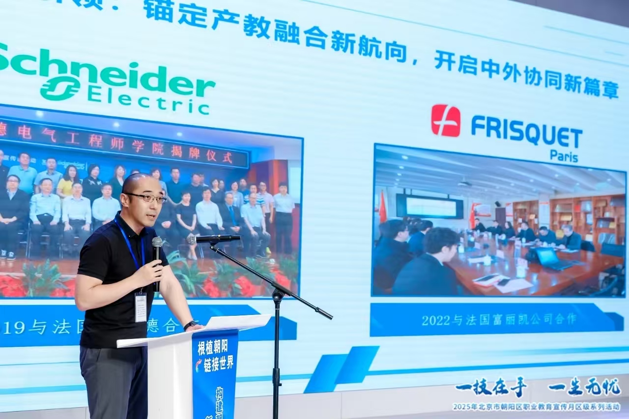 2025年6月7日,朝阳区职业教育宣传月区级活动走进北京798艺术区,聚焦民生需求,向社会展示产教融合的优异成果。法国富丽凯联合电气工程学校创办的中法清洁能源技术培训中心亮相,多维展示职业教育国际化发展新趋势。